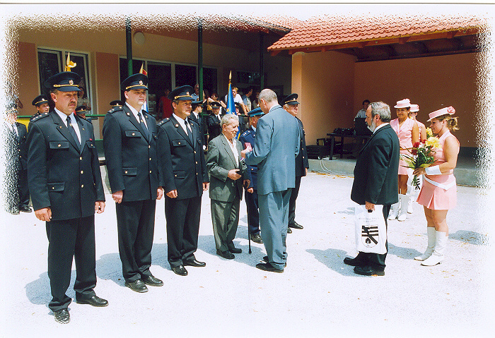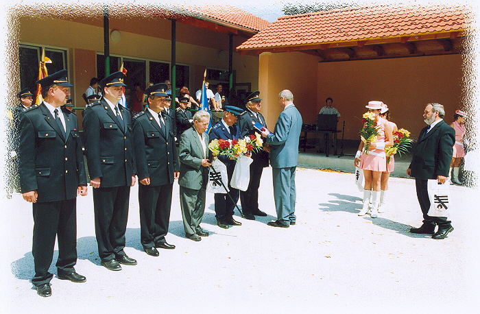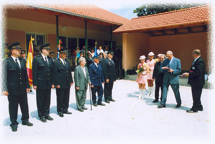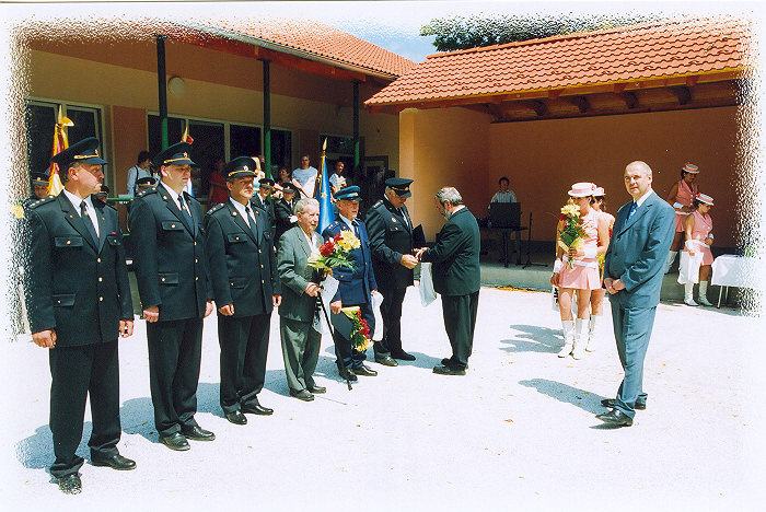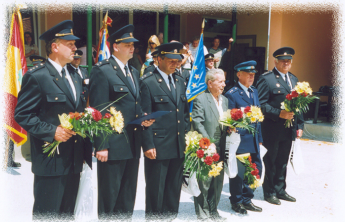 Pamětní listy a vyznamenání obdrželi zleva Kubík Jaromír - velitel Jednotky sboru dobrovolných hasičů, Bárta Roman a Hajný Radek - vedoucí kolektivu mladých hasičů, Opatřil Jaroslav, Vitouch Bedřich a Kubík Otakar ( vzastoupení převzal Špaček Josef - starosta SDH).