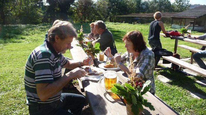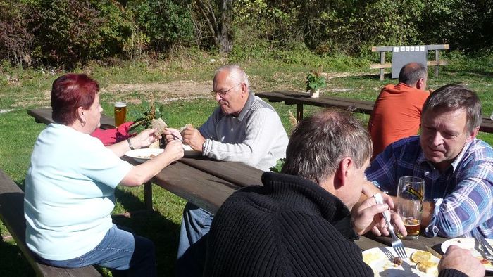 Ke kávě se podávaly zákusky, moc dobré, k pití bylo k dispozici chlazené pivo, a čerstvý burčák a ostatní alko i nealko nápoje. Musíme podotknout, že alko, bylo prověřené.