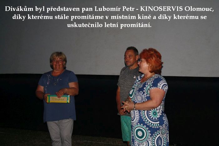 Teď už mohu napsat, že to vůbec nebyl špatný nápad, když nám pan Lubomír Petr z Olomouce (KINOSERVIS OLOMOUC) nabídl zajištění letního promítání. Pan Petr je totiž ten, kdo provedl digitalizaci doubravického kina a zůstal našim servisním technikem. Při jeho poslední návštěvě slovo dalo slovo, líbil se mu náš park na náměstí Svobody a jak vše dopadlo, to už víte. Sobota 28. července 2018 bude zapsána zlatým písmem na stránky našeho kina. Uskutečnilo se I. letní promítání. A nemusí k tomu být ani pravé letní kino. Výběr filmu nechal pan Petr na nás a myslím si, že volba filmu Dvě nevěsty a jedna svatba vůbec nebyla špatná. Lehká česká komedie, při které divák nemusí moc přemýšlet, jen se bavit bonmoty skvělých herců (v hlavních rolích Anna Polívková, Eva Holubová, Bob Klepl a další). Pokud jste sobotní promítání vzdali z jakéhokoliv důvodu, těšte se na příští léto. Akci určitě zopakujeme. Snad nám i potom bude přát počasí stejně jako tuto sobotu. Děkujeme všem diváků kteří se přišli podívat a závěrečným potleskem dali najevo, že byli spokojeni.
