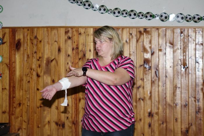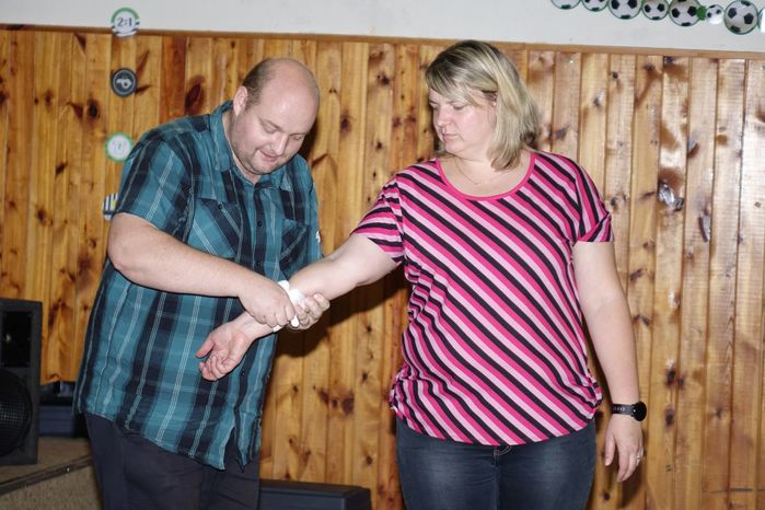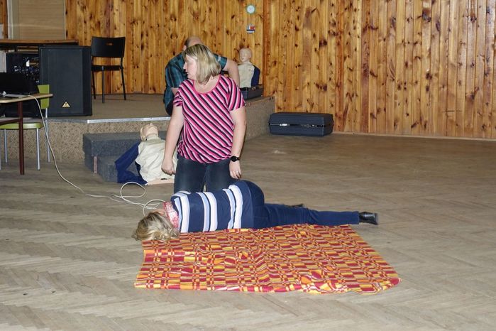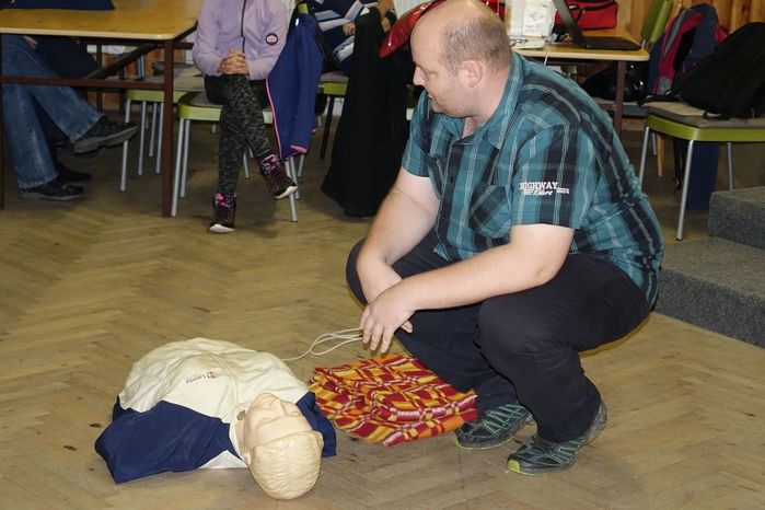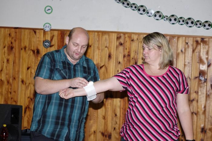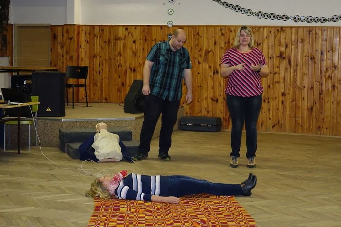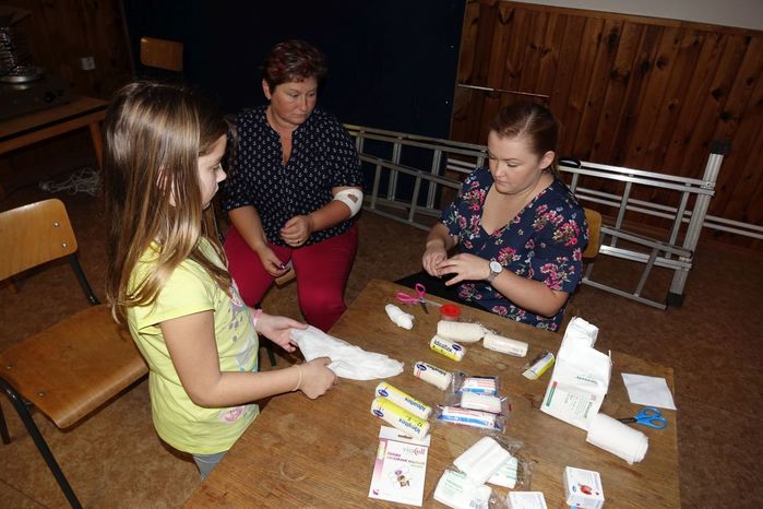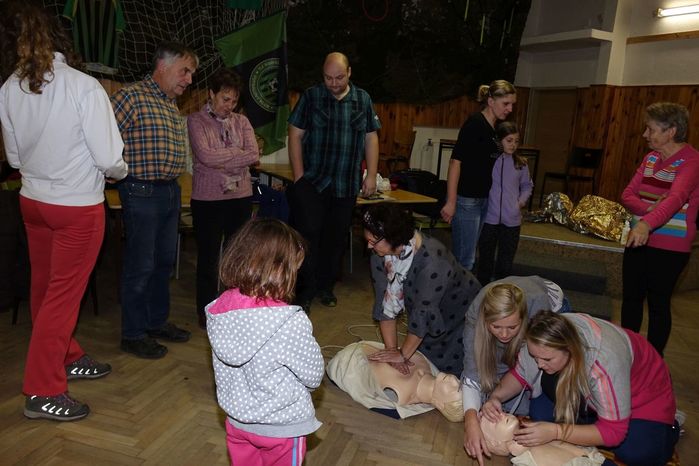 Víte jak se máte zachovat v případě, že se náhodně dostanete k jakékoliv nehodě, víte jak pomoci člověku, kterého postihla mozková příhoda, případně narazíte na osobu, která krvácí z otevřené rány? To vše a ještě spoustu jiných zajímavostí, týkajících se záchrany života, ošetřování a pod. se přítomní dozvěděli od instruktorů z Blanska, kterými byli členové Oblastního spolku ČČK Blansko pan Jiří Kučera a paní Iva Horáková.