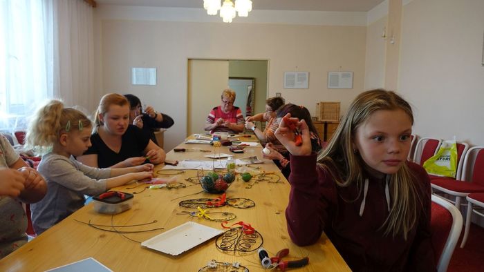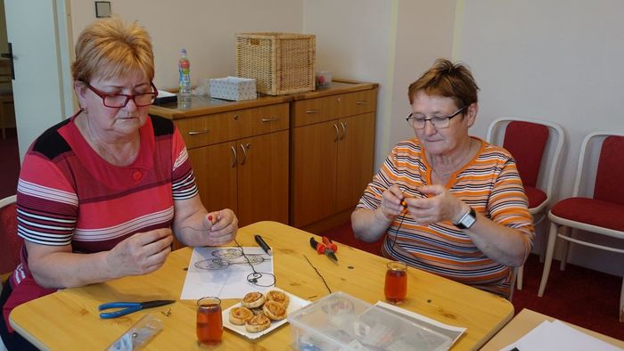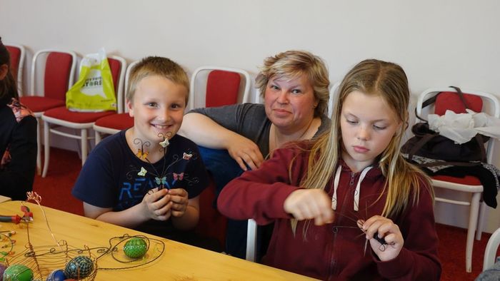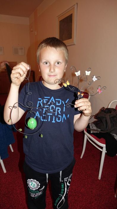 Přesto, že počasí lákalo více k práci na zahrádce, obřadní síň se pěkně zaplnila těmi, kteří měli snahu a chuť vytvořit něco pěkného z drátu. I když někteří tvrdili, že to nezvládnou, zvládli to bez rozdílu všichni. Podívejte se na fotografie, jaké byly vytvořeny krásné zápichy, závěsy apod.