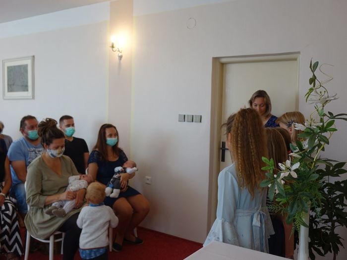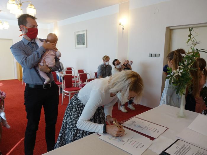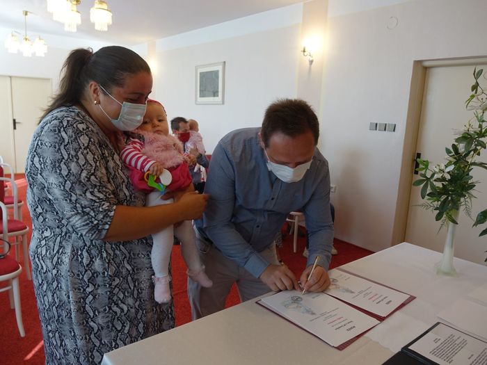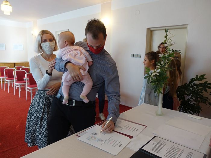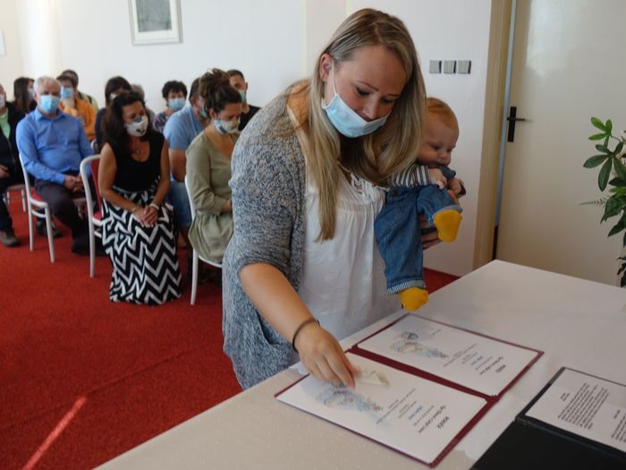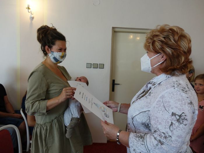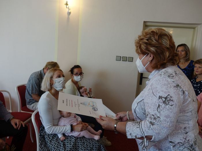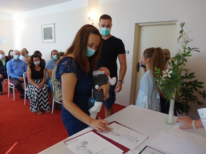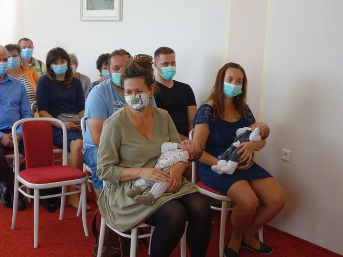 Mezi právoplatné občany našeho městečka bylo přivítáno osm miminek. Celý krásný obřad se odehrál za přítomnosti nezbytných roušek, až na závěrečné "soukromé" fotografování, které mohlo být bez.