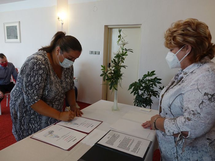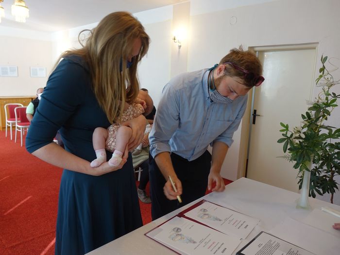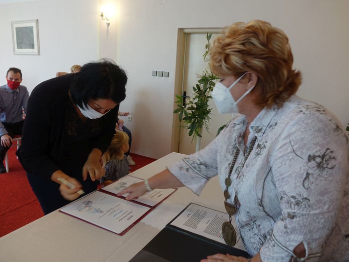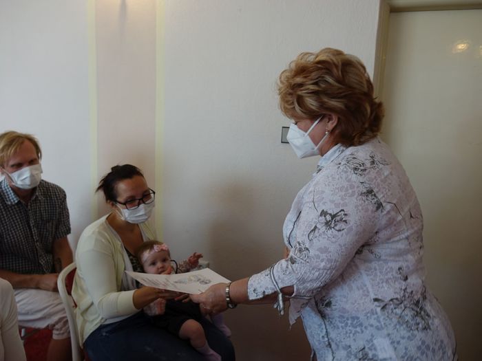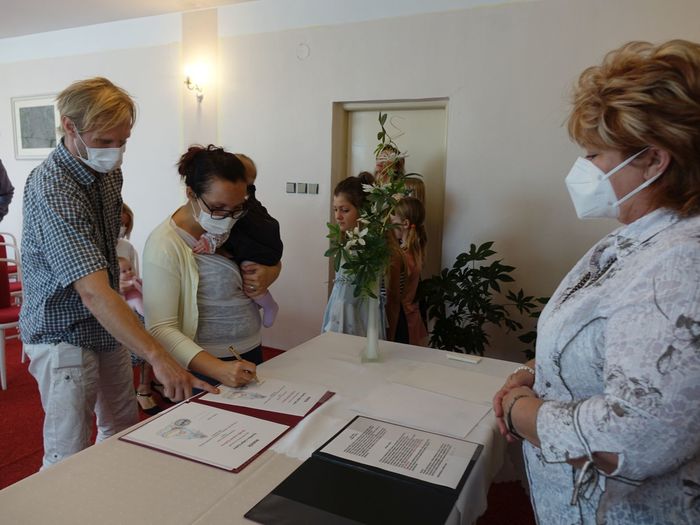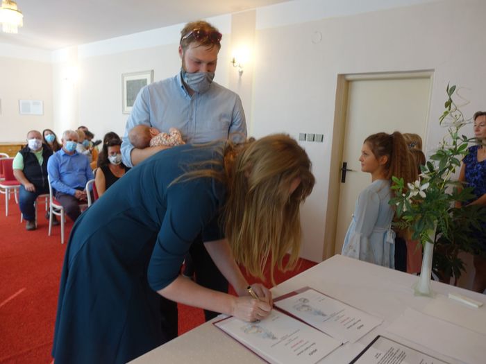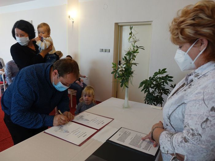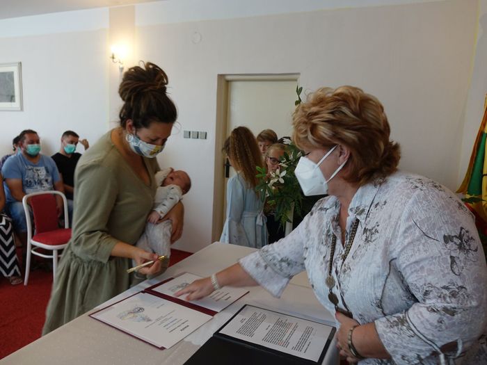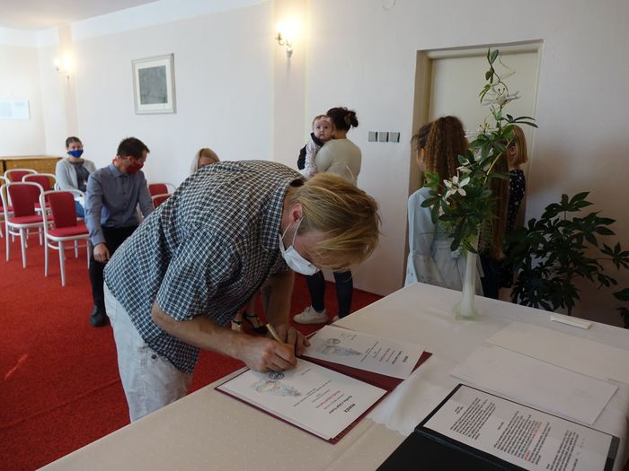 Mezi právoplatné občany našeho městečka bylo přivítáno osm miminek. Celý krásný obřad se odehrál za přítomnosti nezbytných roušek, až na závěrečné "soukromé" fotografování, které mohlo být bez.