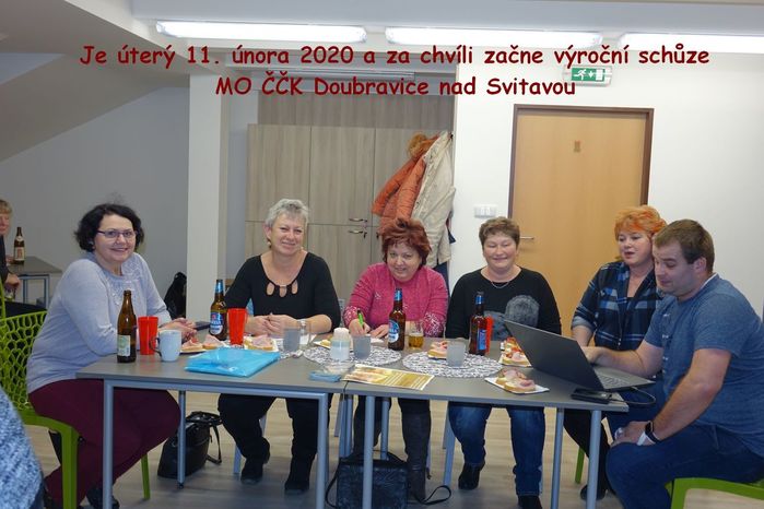 V úterý 11. února 2020 se v nové klubovně ve víceúčelové budově konala výroční schůze MO ČČK Doubravice nad Svitavou. Mnohé členy a příznivce této organizace pravděpodobně odradilo nepříznivé počasí, ale i tak byla klubovna příjemně obsazena těmi, kteří byli zvědavi na zhodnocení roku 2019 a výhledem připravovaných akcí na rok letošní. Více informací najdete ve fotogalerii.
