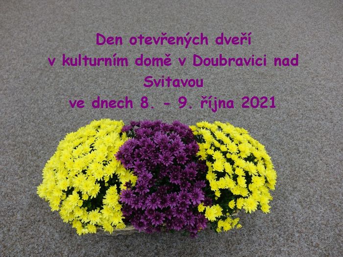 Kulturní dům v Doubravici nad Svitavou -místo, kde se desítky a desítky let (s malými přestávkami) konají téměř všechny kulturní akce městečka (plesy, taneční zábavy, karnevaly, besedy, výroční schůze apod.). A také je to místo, které už mnoho let volalo po velké, ale opravdu velké opravě. Dalo by se říct, že po opravě generální. A stalo se. V roce 2020 získala Doubravice na vysněnou opravu dotaci - a začaly se dít věci. Něco bylo složité, něco zase jednoduché - to se ale stává. Důležité je, že daný termín oprav byl dodržen. Červen 2020 - říjen 2020 - a následovala kolaudace. Plánované kulturní akce však zhatil náš nekamarád koronavirus. Vhodným termínem k tomu, aby si zájemci mohli prohlédnout novotou zářící prostory kulturního domu byly dva dny voleb do Poslanecké sněmovny Parlamentu České republiky ve dnech 8. a 9. října 2021. Přišla téměř stovka doubravických občanů a nenašel se žádný, kdo by řekl: "No, nic moc". Všichni odcházeli spokojeni s tím, že už se těší na první skutečnou kulturní akci.