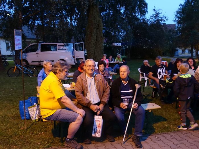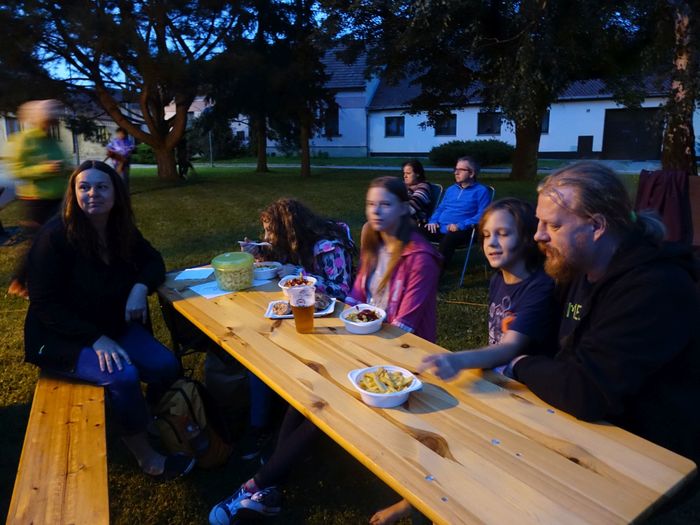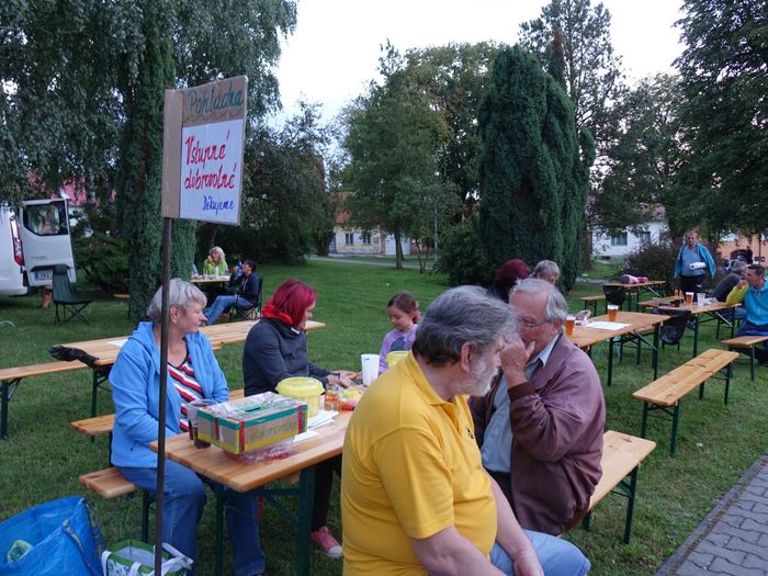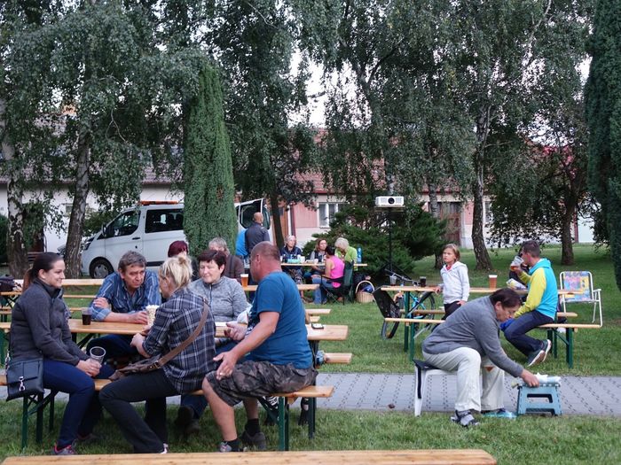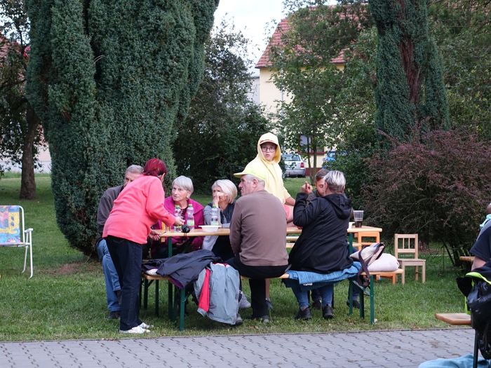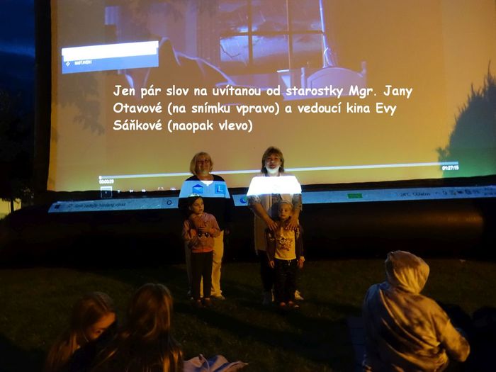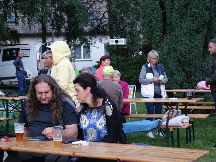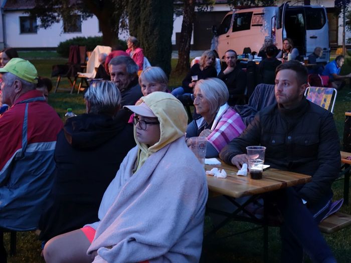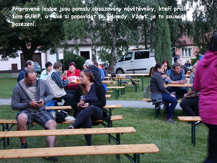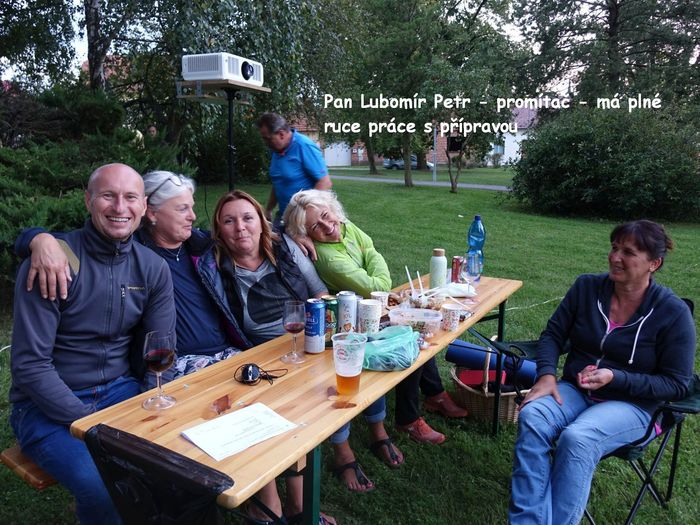 Přesně v den zahájení MFF Karlovy Vary se v krásném parku na náměstí Svobody v Doubravici nad Svitavou konala sice o trochu menší akce jako ta karlovarská, ale určitě stejně dlouho očekávaná. Ano, v pátek 20. srpna 2021 patřilo jmenované náměstí sousedskému posezení a milovníkům filmových představení. Pořadatelé (úřad městyse a zaměstnanci kina) celý den očima drželi mraky na nebi hodně vysoko a tentokrát štěstí přálo. Ani horko, ani zima, ani kapka deště. Tak akorát. Park připraven - tzn. stoly, lavice, dobrovolní hasiči se stánkem bohatého občerstvení a to nejdůležitější - pan Lubomír Petr, náš letní promítač z Olomouce. Zájemců o posezení a následné promítání přišlo docela hodně (to nás těší, rok od roku je jich víc). Úderem 21 hodiny, kdy už byla pěkná tma, pan promítač spustil GUMPA. To je rodinný film o psovi, který naučil lidi žít. A diváci byli zřejmě spokojeni - svědčil o tom závěrečný potlesk.