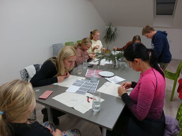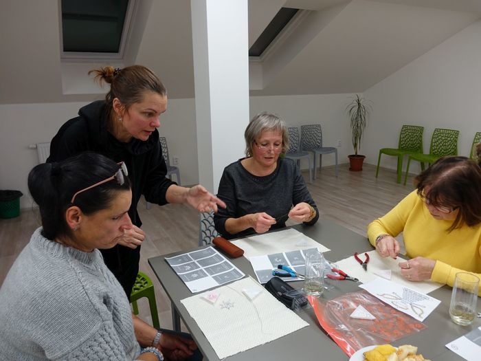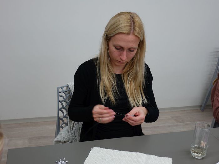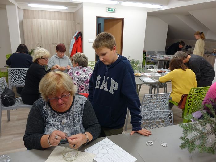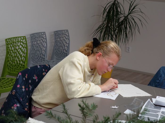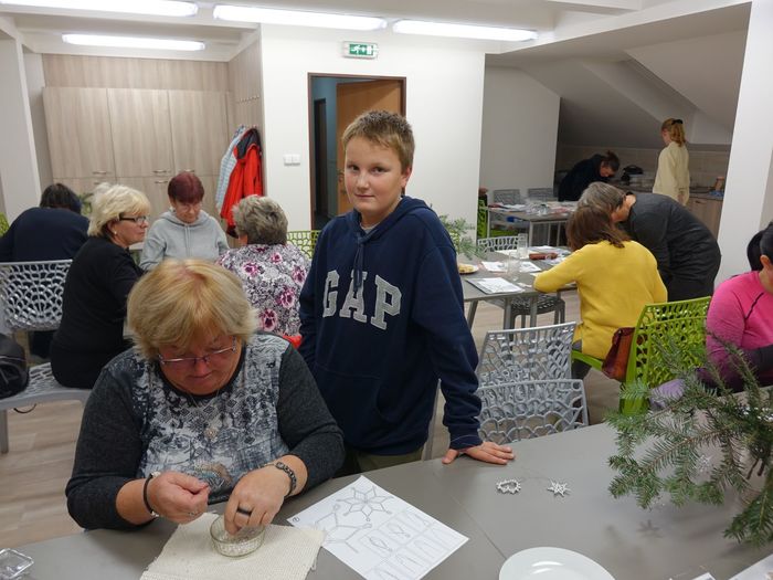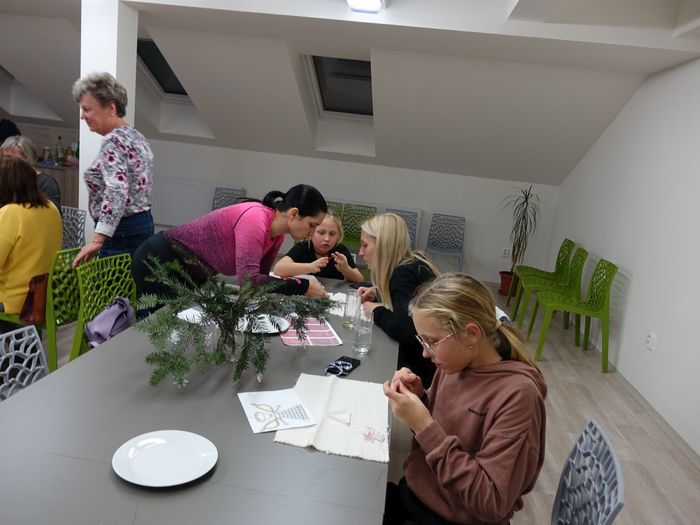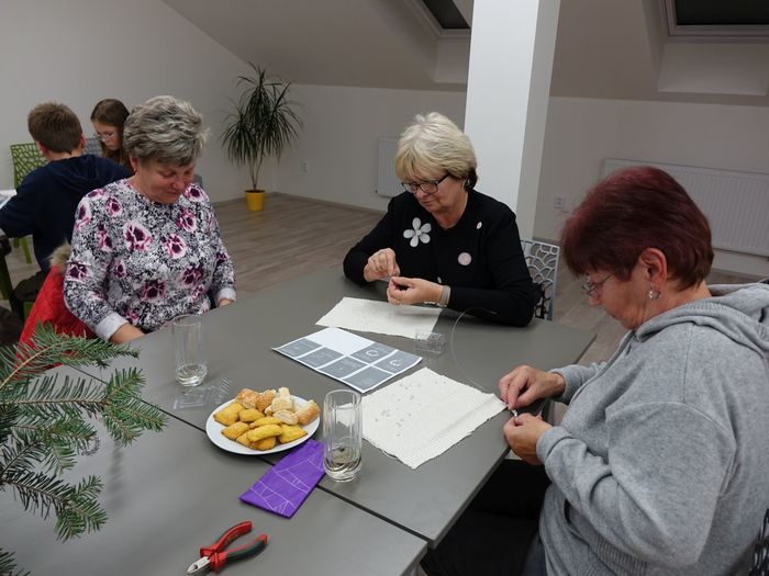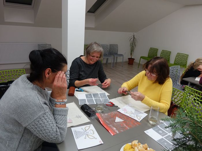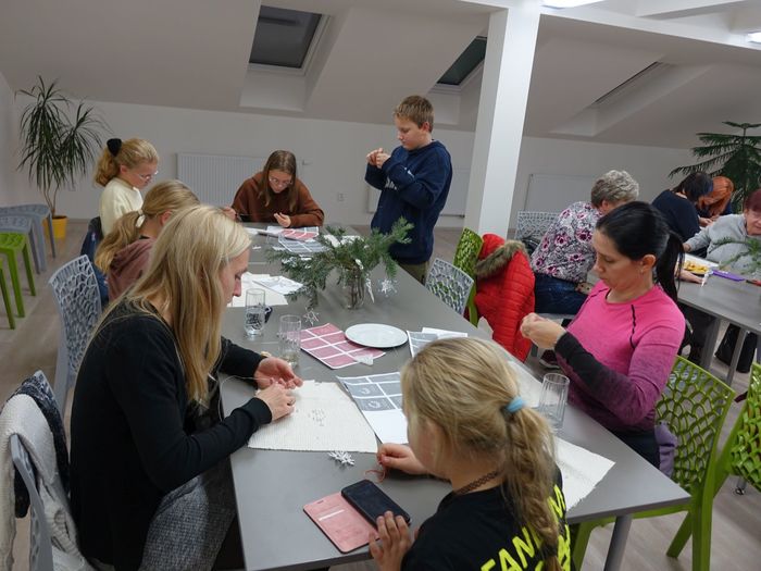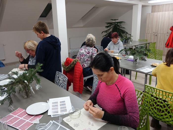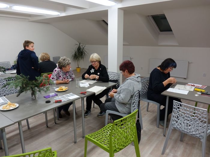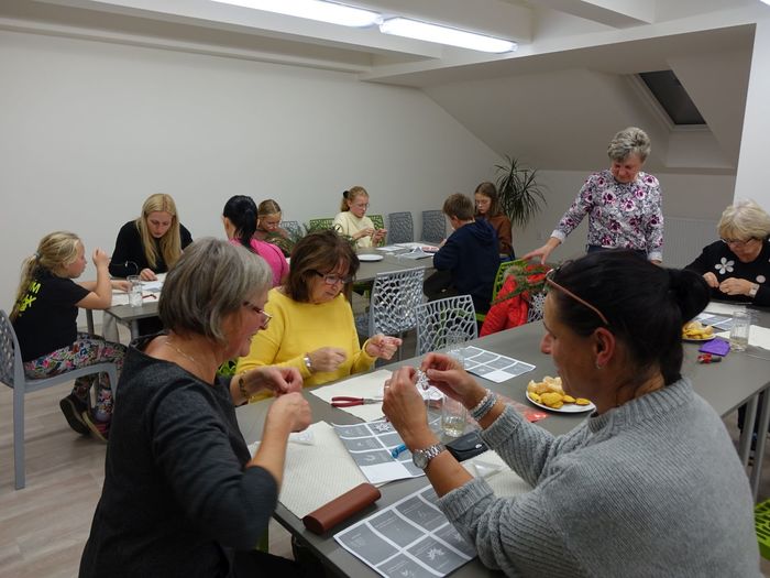 Prostory klubovny v prvním patře víceúčelové budovy přímo vybízí k pořádání tzv. malometrážních akcí, jako jsou besedy, přednášky, tvořivé dílničky - a tady udeříme hřebík přímo na hlavičku, jak se lidově říká. Jedna taková tvořivá dílnička se zde konala ve středu 9. listopadu 2022. Téma bylo "Předvánoční korálkování". Jak všichni víme, nekamarád covid nám na dva roky překazil téměř veškerou kulturní a společenskou činnost, tak uspořádat takovou akci byl tak trochu risk. Ale vyplatil se. Sešlo se nás patnáct. Čtrnáct žen a dívek a jeden mladý muž. A tvořilo se, vyrábělo se, k tomu se povídalo, ochutnávalo malé občerstvení - jedním slovem pohoda. A i když se některé korálky v závěru sbíraly po zemi, nic to neubralo úžasné atmosféře středečního podvečera. Věřím, že se svými výrobky byli všichni spokojeni, doma byli pochváleni a že korálkové hvězdičky, srdíčka a rampouchy budou zářit na vánočních stromečcích.