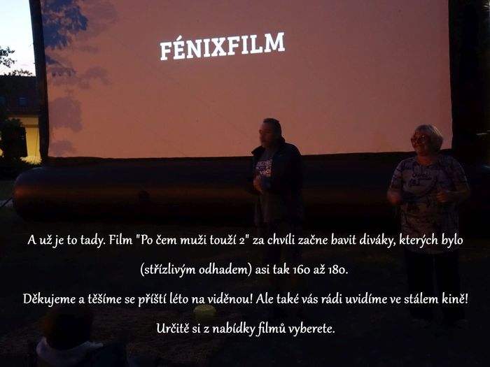 Rok se s rokem sešel a 12. srpna nás čekalo letní promítání filmu v Doubravici nad Svitavou na náměstí Svobody. Předpověď počasí neslibovala nic moc. Ale "tam nahoře" asi viděli, jak se všichni na páteční podvečer a večer těší, a proto vše dopadlo na výbornou. Počasí krásné, náměstí také krásné (nejen prostředím, ale také obsazením diváků), tak co víc si ještě přát. Film "Po čem muži touží 2 " připraven, pan Lubomír Petr z KINOSERVISU Olomuc také, tak můžeme začít! Ve fotogalerie se podívejte na to, jak vše dopadlo.