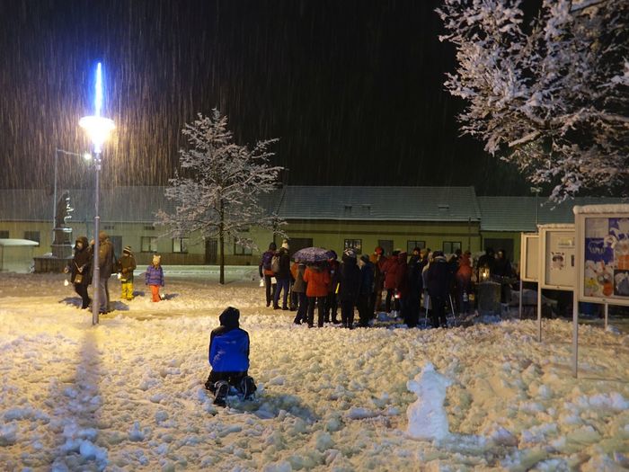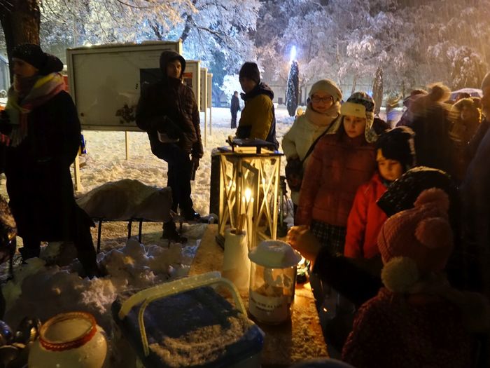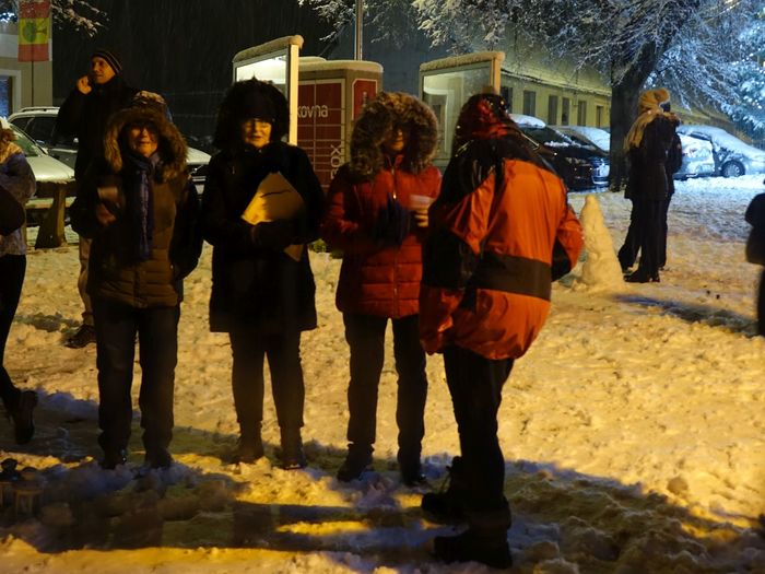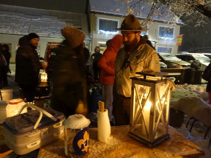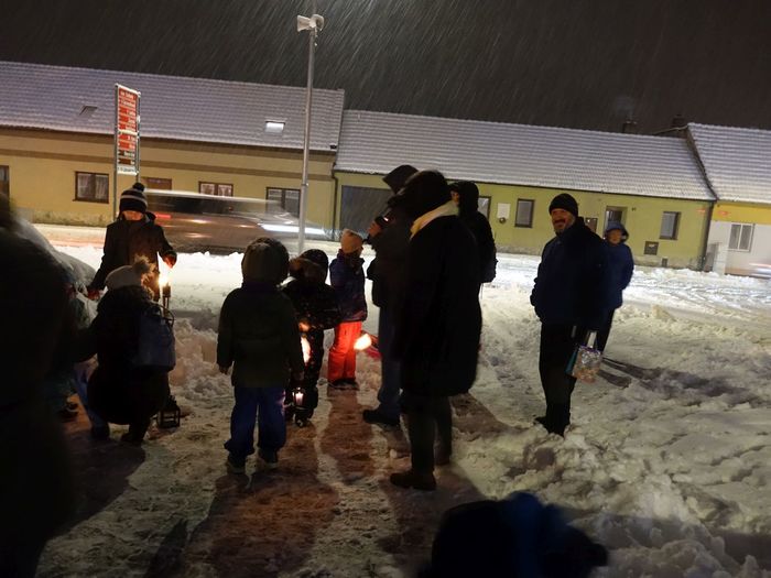 Další ročník rozdávání Betlémského světla, který každoročně připravují naši skauti, je za námi. Není snad jednoho člověka, který by si nepřál bílé, zasněžené Vánoce. Dnes se nám přání splnilo. Téměř celý den se k zemi snášel dlouho očekávaný sníh a nepřestal ani ve chvíli, když se na našem krásně osvíceném a ozdobeném náměstí Svobody začali scházet ti, kteří si chtěli od Betlémského světla zapálit svoji svíci. Pro všechny přítomné bylo připraveno jedno velké překvapení. Celou akci totiž doprovázela skupina muzikantů pozvaných panem Skácelem z Klemova. Ten s nimi po celou dobu hrál vánoční koledy, které se i v tom mírně nepříznivém počasí rozléhaly nejen po náměstí, ale také po okolích ulicích. Bylo to něco nového a věřím, že všichni přítomni byli nadšeni. A nechybělo ani skvělé občerstvení, které připravili skauti pod vedením Martina Štoudka. Děkujeme za příjemné zážitky! Přiložené fotografie snad ani nepotřebují komentář, tak jen tiše prohlížejte a vzpomínejte, jaký to byl krásný podvečer.