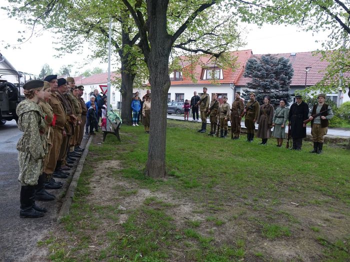 Klub vojenské historie MARKLAND, z.s. v rámci projektu "CESTA SVOBODY - po stopách 1. československého armádního sboru na Moravě" projel v sobotu 6. května 2023 naší obcí. Kolona originálních historických vojenských vozidel, včetně vojáků v dobových uniformách, uctila památku padlých ve 2. světové válce krátkou pietní akci u pomníku padlých na Soukopově náměstí před základní školou.