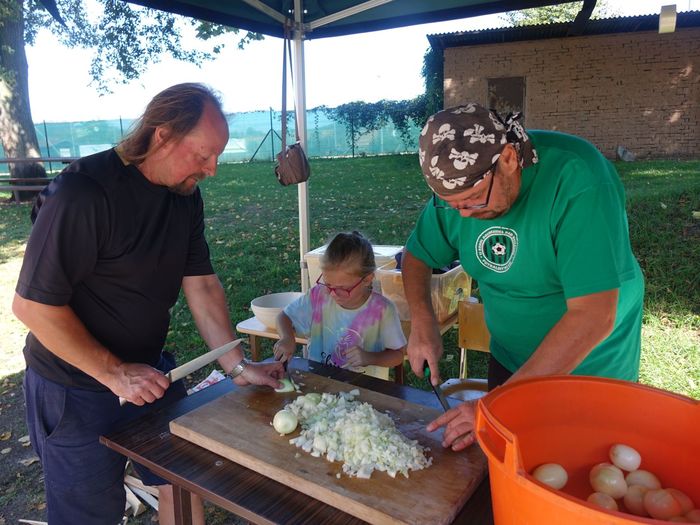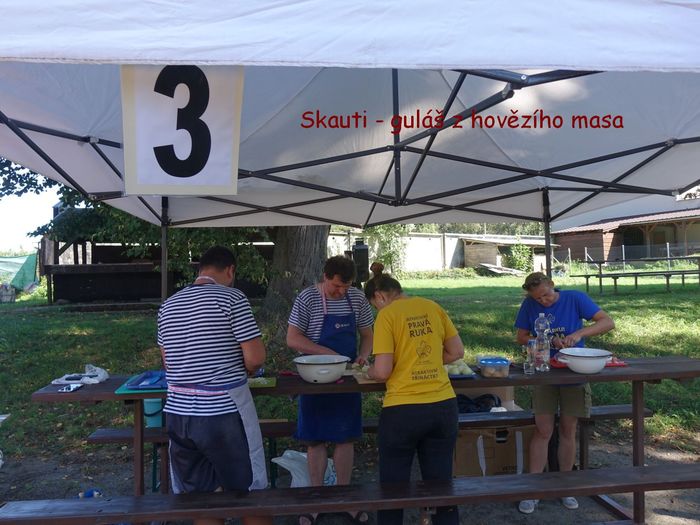 Několik let byla v této oblíbené soutěži pauza. V minulém roce ji obnovil místní fotbalový klub jako I. ročník, a v sobotu 16. září se konal její II. ročník. S odstupem času můžeme říct, že to byl velmi dobrý nápad a i sobotní soutěžní odpoledne bylo zdařilé. Velmi důležitá věc - počasí - jako na objednávku. Kotlů pět - tak akorát, aby si ochutnávači zapamatovali, jak který guláš chutnal a mohli ve finále přidělovat body. Tak se podívejte na několik snímků, jak sobotní odpoledne na Sokolském hřišti probíhalo.