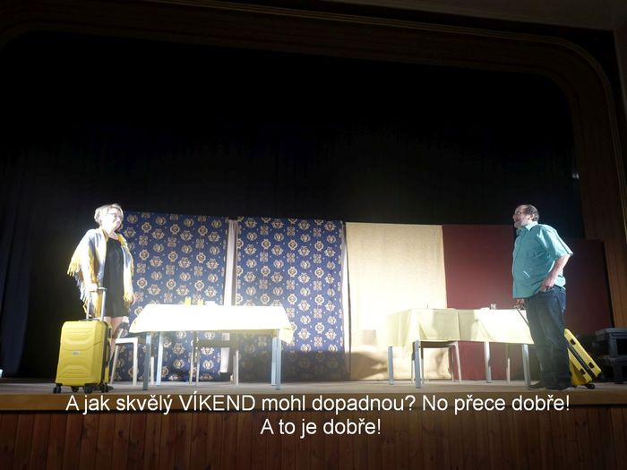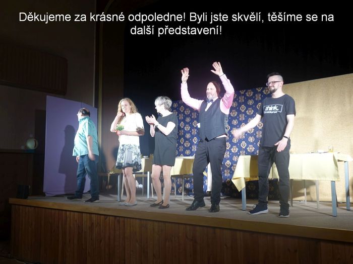V sobotu 17. února patřil sál místního kina milovníkům divadla. Po delší odmlce přijel soubor divadelních ochotníků z Boskovic s komedií VÍKEND. A hodnocení? Samé superlativy! I když snímky toho moc nenapoví, tak se přece jen podívejte. A příště se přijďte podívat. Přesto, že to nejsou profíci, závěrečný potlesk byl zasloužený!