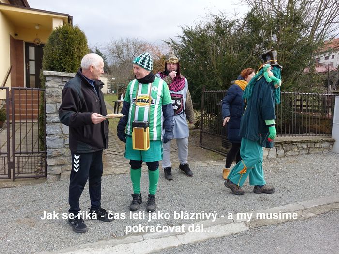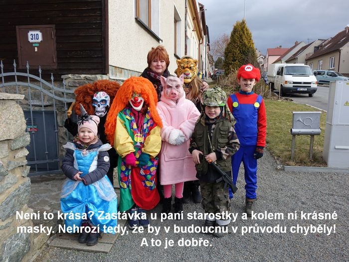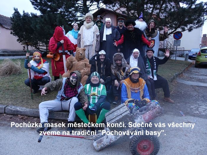 Po hasičském plese je to další větší akce ve městečku. A stejně jako předcházející ples - akce tradiční. Na pochůzku masek se připravují nejen fotbalisté a jejich kamarádi, ale také mnoho domácností. Koblihy větší či menší, různé chuťovky, něco na dodržování pitného režimu - to vše je pro masky po celou cestu připraveno. Za odměnu všichni dostávají pozvánky na Pochovávání basy s přáním všeho dobrého po celý rok. Jak probíhala pochůzka masek,na to se můžete podívat do fotogalerie. Průvod nevynechal ani jednu ulici. I když by se to mohlo podle fotografií zdát, není tomu tak. Jen jsem nestíhala. Tak pěknou podívanou !