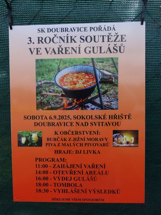 V minulém roce termín pro tuto soutěž vypršel. A teď to v noci na sobotu 6. září také nevypadalo nic moc. Ale štěstí fotbalistům přálo. Nad ránem přestala z nebe padat voda, a i když nebyla sobota přímo výstavní, nic to neubralo na pohodě, která gulášové soutěžení provázela. Tak klikejte a prohlížejte!