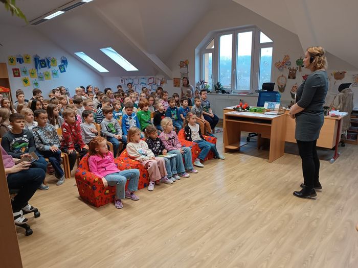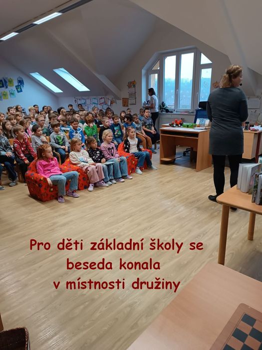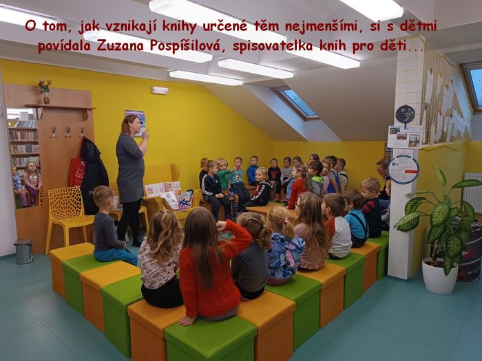Ve středu 3. prosince navštívila naši knihovnu Zuzana Pospíšilová, spisovatelka knih pro děti. A když je to spisovatelka, která píše hlavně pro děti, je nad slunce jasné, že přijela proto, aby o svojí práci povídala hlavně dětem. A jak uvidíte na fotografiích, děti se zájmem její vyprávění poslouchaly. Nejprve děti z mateřské školy, které s paní učitelkou přišly do knihovny. Bededa byla zajímavá také pro děti základní školy, ale protože pro všechny by byla knihovna malá, beseda pro ně se uskutečnila v základní škole.