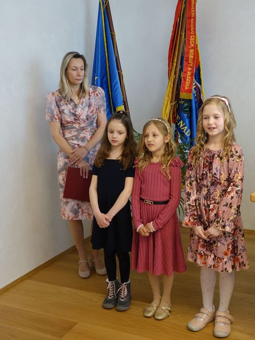 Za docela příjemného jarního počasí se v neděli 13. dubna v obřadní síni našeho městečka uskutečnilo první vítání občánků v tomto roce. Mezi občany Doubravice nad Svitavou byla přivítána tři miminka - dvě holčičky a jeden chlapeček. O kulturní vložku této krásné slavnosti se postaraly tři malé slečny z naší základní školy pod vedením paní učitelky Eriky Bartíkové, na klávesy doprovázela paní učitelka hudby Barbora Dobešová.