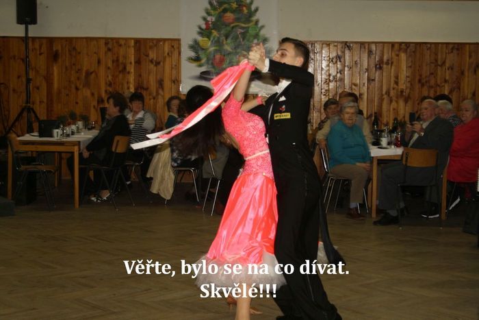 Ano, je to tak. Na den přesně - po roce - ( 29. 12.) se sešli doubravičtí senioři, jejich přátelé, známí a kamarádi, aby společně zakončili rok 2018. A stejně jako v přechozích letech, tak i v tom letošním, jim pro tento den patřil doubravický kulturní dům, který byl zaplněn do posledního místečka. Pro dobrou náladu, k tanci, ale také jen k poslechu hrála hudební skupina REVIVAL. A co bylo dál? Dál bylo pro všechny připraveno velké překvapení. Svoje taneční umění ve společenském tanci předvedl domácí Alexej Petečel se svojí taneční partnerkou Monikou Štěpánkovou z Blanska. Oba dva navštěvují taneční školu DANZA Brno. V ukázkách předvedli standardní tance i tzv. "latinu" - tance latinsko-americké. Závěrečný potlesk byl opravdu zasloužený. Jejich vystoupení bylo ne třešinka, ale velká třešeň na dortu, jak se říká. Všichni jim určitě přejeme hodně dalších a dalších úspěšných vystoupení, hlavně pak na tanečních soutěžích.