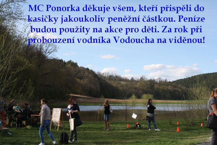 Všichni pak společně zazpívali písničku Holka modrooká a čekali, jestli jejich zpěv probudí Vodoucha. Podařilo se a zábavné odpoledne mohlo pokračovat. Krásná vodnice pozvala děti na palouk, kde měly za úkol najít zlatý klíč. I tento úkol děti splnily a mohlo začít plnění úkolů. To ale ještě nebylo všechno. Po splnění všech úkolů každé dítě dostalo plátěnou tašku, kterou si mohlo podle libosti samo, případně za pomoci dospělých, nazdobit. A sladkosti? Ty byly pro děti připraveny také, jako vždy. Bylo to krásné odpoledne, které se muselo líbit všem.