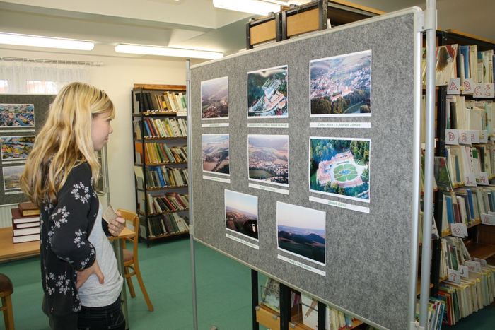 Prostory knihovny jsou jako předurčeny k tomu, aby zde byly pořádány různé výstavy a výstavky. Taková malá výstavka fotografií s názvem "Z ptačí perspektivy" zde byla umístěna v listopadu a prosinci roku 2011. Vystaveny byly fotografie Doubravice a blízkého okolí, které v září 2011 při vyhlídkovém letu pořídila kronikářka městečka Eva Sáňková. Kdo se nezašel podívat do knihovny, může si výběr fotografií prohlédnout nyní.